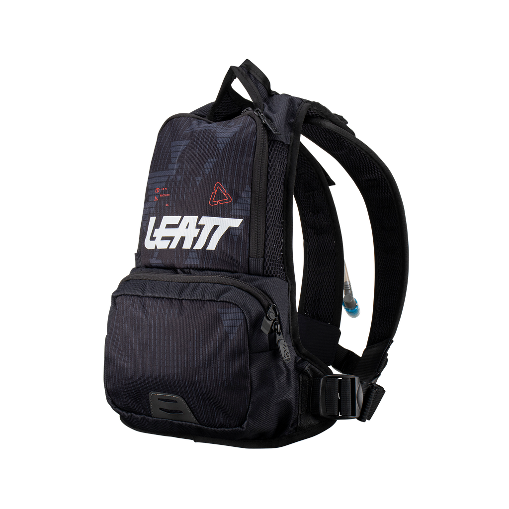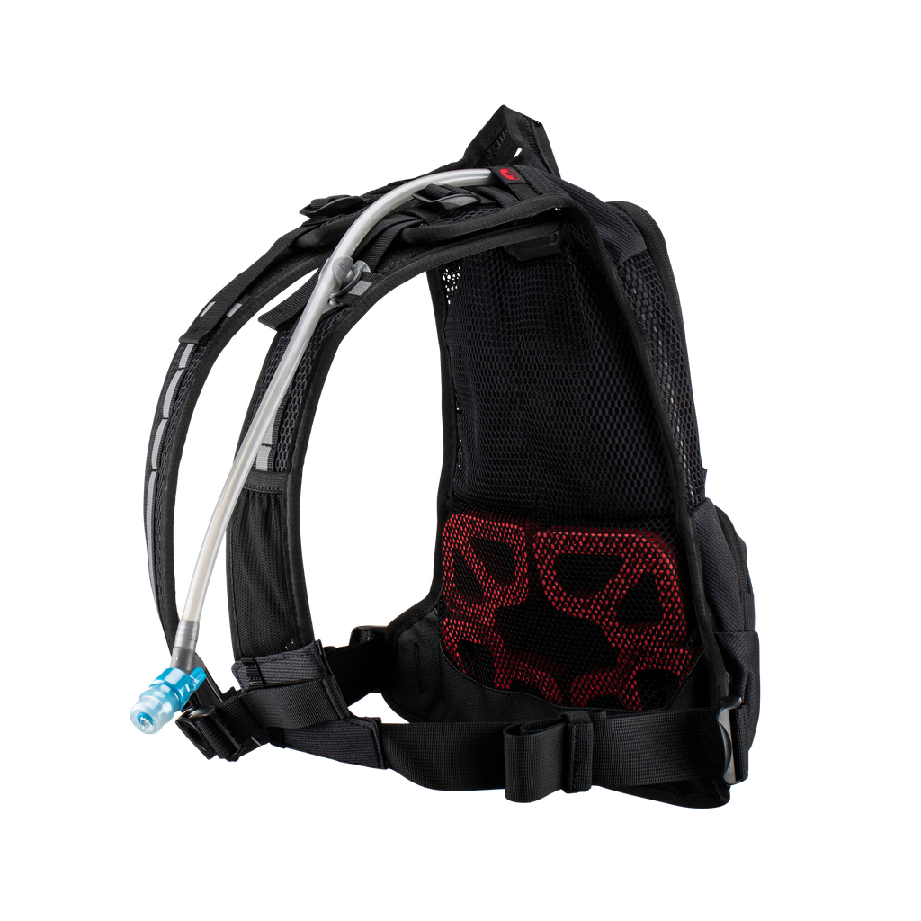 De hydratatieslang is voorzien van een snelkoppeling voor handsfree gebruik en heeft een automatische afsluitklep. Voor langere ritten kan een extra 2,0 liter blaas worden toegevoegd aan het hoofdvak, en een ingebouwd warmtereflecterend paneel houdt vloeistoffen koel wanneer nodig. De tas is ontworpen om te dragen met of zonder Leatt nekbrace.